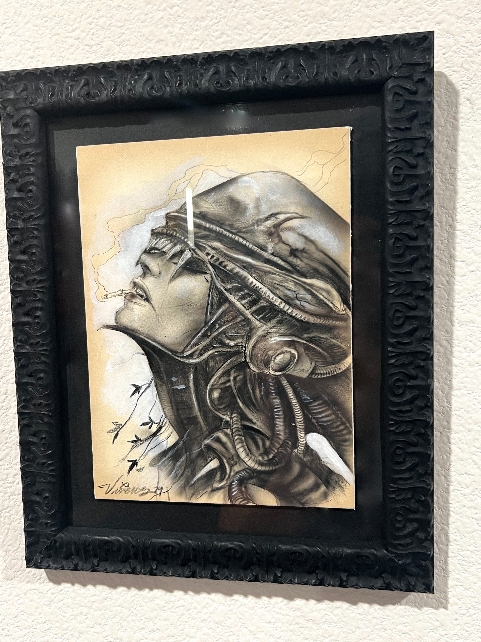 This beautiful original pays tribute to HR GIGER's iconic film series, ALIEN, and is an icon of its own. These ALIEN tribute originals feature Viveros girls as "XENOTROOPERS" wearing the classic Alien headgear. The first Alien Headgear piece was featured during a show for an HR GIGER curated exhibition back in 2012.
